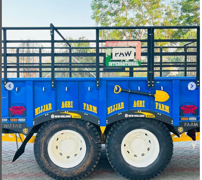 इन तस्वीरों को देखने पर पता चला कि अधिकांश ट्रालियों पर PAW लिखा हुआ है. PAW एक PLAHA AGRI INDUSTRIES का लोगो है. साथ ही हमने यह भी पाया कि अधिकांश ट्रालियों पर PAW के बाद पंजाबी सरनेम जैसे “SIDHU, NIJJAR, KANG” के साथ “AGRI FARM” लिखा हुआ था.