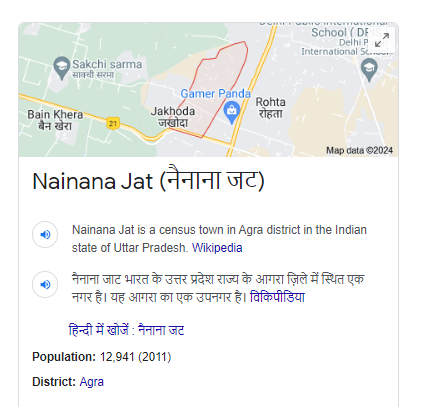 अब हमने नैनाना जाट इलाके के बारे में गूगल सर्च किया तो पता चला कि यह आगरा के सदर थाना क्षेत्र में आने वाला एक इलाका है.