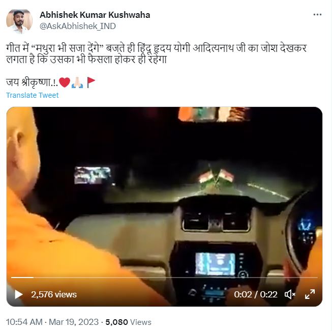 सोशल मीडिया पर एक वीडियो वायरल है, जिसमें भगवा वस्त्र पहने एक व्यक्ति कार में बैठा हुआ नज़र आ रहा है। वीडियो में ‘जो राम को लाए हैं, हम उनको लाएंगे’ गीत बज रहा है। पोस्ट के जरिए दावा किया जा रहा है कि कार में बैठकर भजन सुन रहे व्यक्ति यूपी के सीएम योगी आदित्यनाथ हैं।