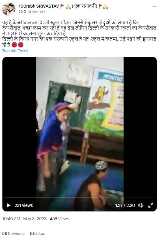 इस तरह यह स्पष्ट है कि सोशल मीडिया पर दिल्ली के सरकारी स्कूलों को मदरसा बना दिया’ दावे के साथ वायरल हुआ वीडियो, दिल्ली के किसी सरकारी स्कूल का नहीं है। यह वीडियो गाजियाबाद के विजय नगर स्थित एक प्राथमिक विद्यालय का है।