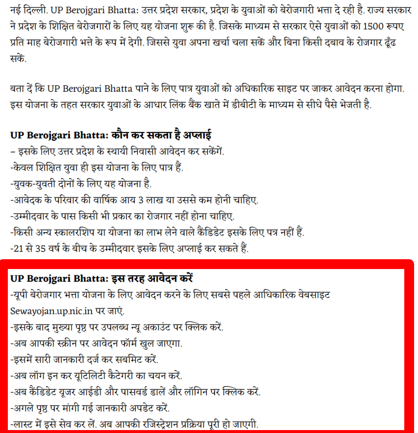 News18 द्वारा प्रकाशित लेख: https://hindi.news18.com/news/jobs/up-berojgari-bhatta-unemployed-in-up-are-getting-1500-rupees-per-month-know-how-to-apply-3859279.html