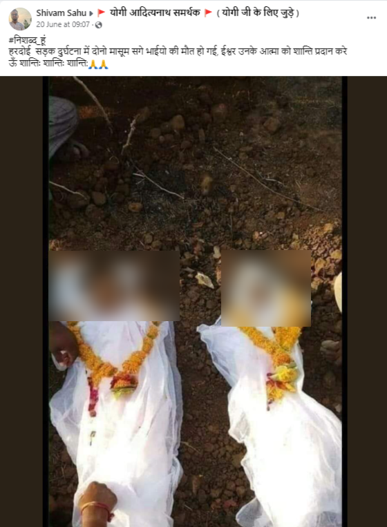 सोशल मीडिया पर एक तस्वीर शेयर कर यह दावा किया गया कि यूपी के हरदोई में एक सड़क दुर्घटना में दो मासूम भाइयों की मौत हो गई.