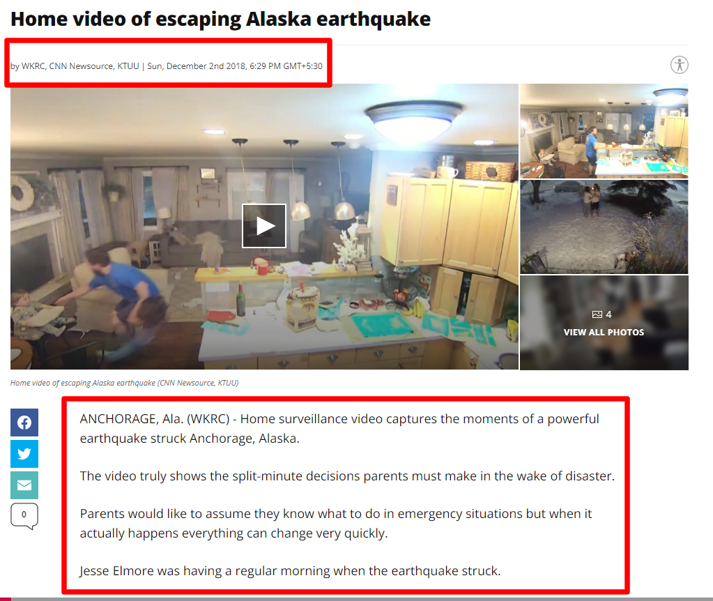 गौरतलब है कि WKRC Local 12 द्वारा 2 दिसंबर 2018 को प्रकाशित लेख में भी इस वीडियो को अलास्का के एंकरेज के निवासी Jesse Elmore के घर का बताया गया है.