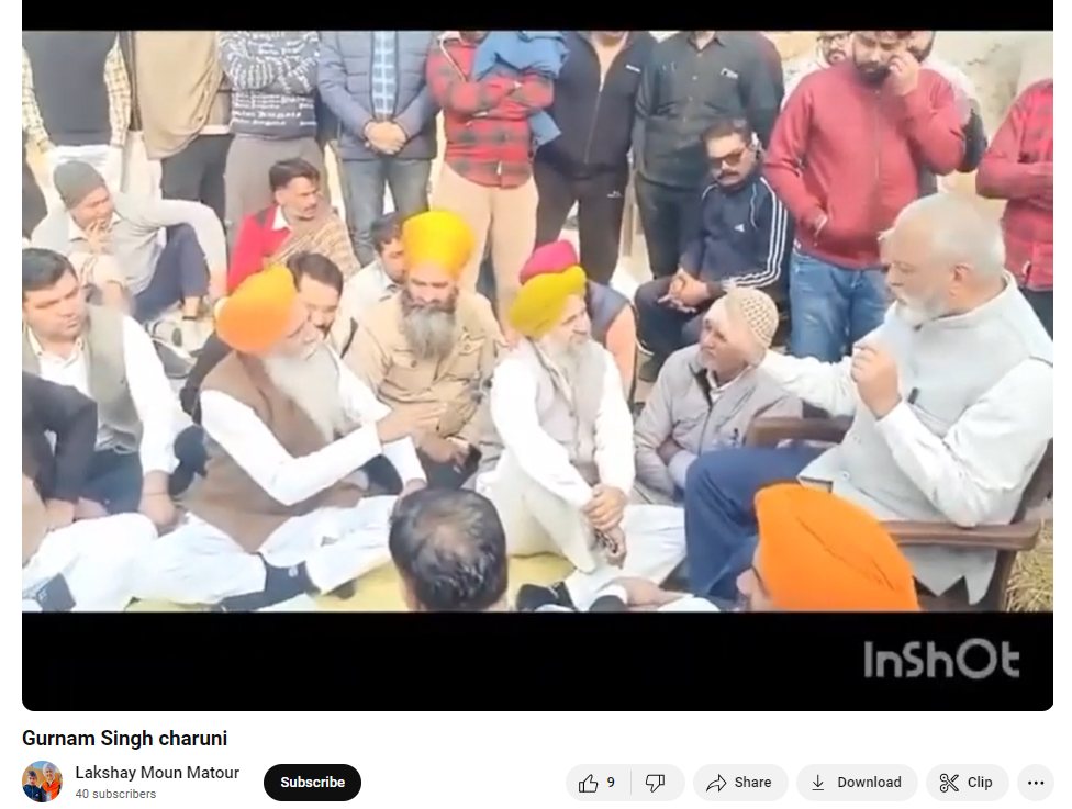 जांच में आगे हमें Lakshay Moun Matour नामक यूट्यूब चैनल पर पोस्ट की गयी 5 मिनट 33 सेकंड लम्बी वीडियो में भी दावे के साथ शेयर की गयी वीडियो का हिस्सा मिलता है। 31 जनवरी 2024 को शेयर की गयी इस वीडियो के कैप्शन में भी गुरनाम सिंह चरुणी का नाम लिखा हुआ है।