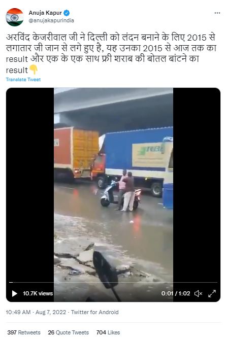 दिल्ली बीजेपी की प्रवक्ता अनुजा कपूर समेत कई ट्विटर यूजर्स ने इस वीडियो को शेयर करते हुए इसे दिल्ली का बताया है।