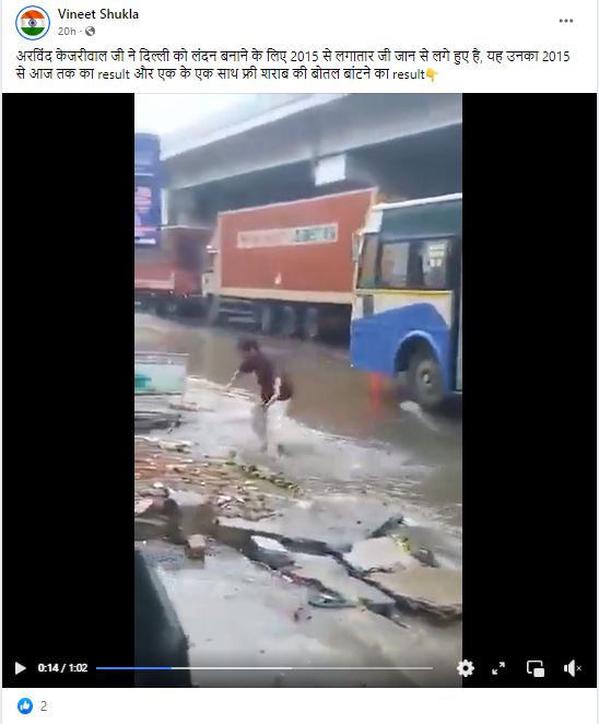 सोशल मीडिया पर अरविंद केजरीवाल के नेतृत्व वाली दिल्ली सरकार को निशाना साधते हुए एक वीडियो वायरल है। इस वीडियो में नशे में धुत एक आदमी बस स्टैंड के पास नज़र आ रहे ड्रेनेज में लड़खड़ा कर गिर गया, उसे बचने के लिए आसपास मौजूद लोगों को कड़ी मशक्कत करनी पड़ी। दावा किया गया है कि यह वीडियो दिल्ली का है और सरकार द्वारा शराब सस्ती किए जाने की वजह से ऐसा वाक्या देखने को मिल रहा।