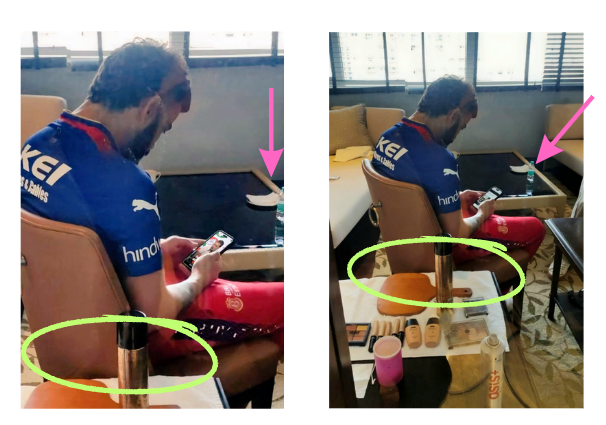 सोशल मीडिया पर भारतीय क्रिकेटर विराट कोहली की एक तस्वीर वायरल हो रही है। तस्वीर में वे अपने मोबाइल फोन की तरफ देख रहे हैं और फ़ोन स्क्रीन पर राहुल गांधी की तस्वीर नज़र आ रही है। सोशल मीडिया पर इस तस्वीर के साथ दावा किया जा रहा है कि विराट कोहली राहुल गाँधी की प्रेस कांफ्रेंस देख रहे हैं। हालांकि, अपनी जांच में हमने पाया कि विराट कोहली की मोबाइल स्क्रीन पर राहुल गांधी की प्रेस कॉन्फ्रेंस की एक तस्वीर को एडिट करके जोड़ा गया है।