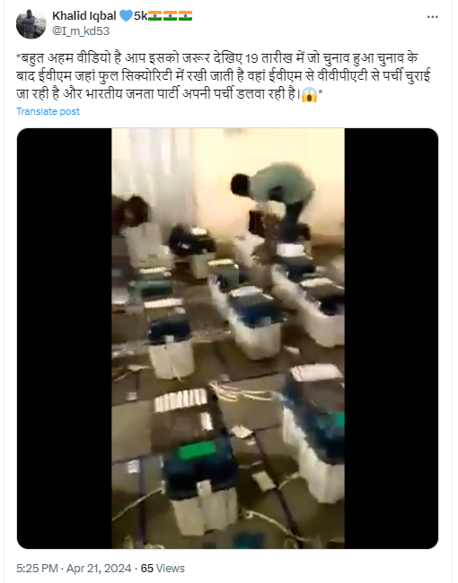 वायरल वीडियो करीब 1 मिनट 46 सेकेंड का है, जिसमें कुछ लोग एक कमरे में रखी कई वीवीपैट मशीनों से पर्चियां निकालते दिखाई दे रहे हैं. इस वीडियो को वायरल दावे वाले कैप्शन के साथ शेयर किया गया है, जिसमें लिखा हुआ है, “बहुत अहम वीडियो है आप इसको जरूर देखिए 19 तारीख में जो चुनाव हुआ चुनाव के बाद ईवीएम जहां फुल सिक्योरिटी में रखी जाती है वहां ईवीएम से वीवीपीएटी से पर्ची चुराई जा रही है और भारतीय जनता पार्टी अपनी पर्ची डलवा रही है”. पोस्ट का आर्काइव यहां देखें।