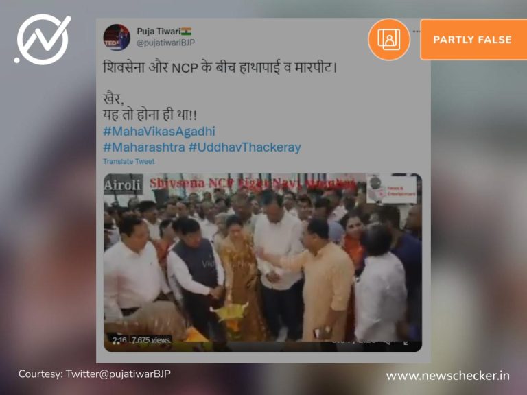 सोशल मीडिया पर एक वीडियो शेयर कर दावा किया गया कि महाराष्ट्र में चल रहे राजनीतिक संकट के बीच एनसीपी और शिवसेना कार्यकर्ताओं के बीच मारपीट हुई है। हमारी पड़ताल में यह दावा भ्रामक साबित हुआ।