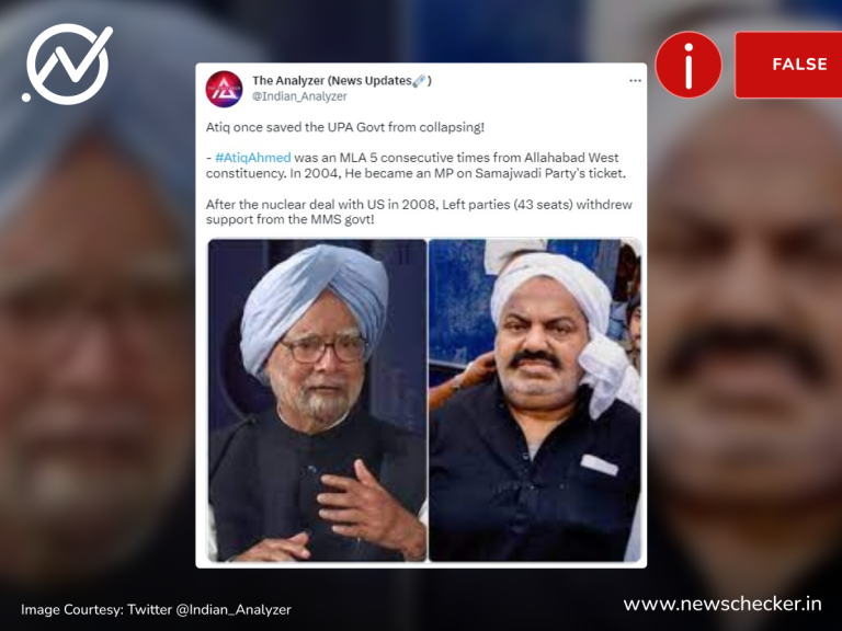 सोशल मीडिया पर एक पोस्ट शेयर कर दावा किया जाने लगा कि पूर्व सांसद अतीक अहमद ने साल 2008 में यूपीए सरकार द्वारा लाए गए विश्वास प्रस्ताव के पक्ष में वोट किया था। हमारी पड़ताल में यह दावा फर्जी निकला। फैक्ट चेक यहां पढ़ा जा सकता है।