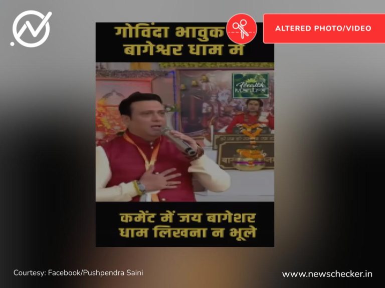 सोशल मीडिया पर एक वीडियो शेयर कर दावा किया गया कि फिल्म अभिनेता गोविंदा, मध्य प्रदेश स्थित बागेश्वर धाम पहुंचे थे. हमारी जांच में यह दावा फर्जी निकला। फैक्ट चेक यहां पढ़ा जा सकता है।