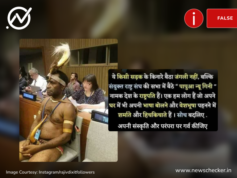 सोशल मीडिया पर पारंपरिक वेशभूषा में दिख रहे एक व्यक्ति की तस्वीर शेयर कर दावा किया जाने लगा कि ये ‘पापुआ न्यू गिनी’ देश के राष्ट्रपति हैं। हमारी पड़ताल में यह दावा फर्जी साबित हुआ। फैक्ट चेक यहां पढ़ा जा सकता है।