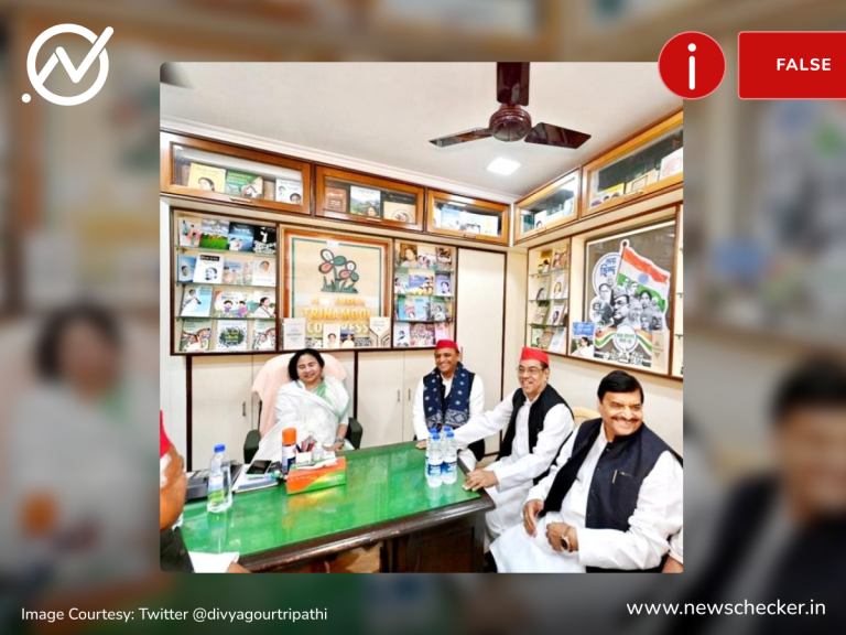 सोशल मीडिया पर एक पोस्ट के जरिए दावा किया गया कि ममता बनर्जी से मिलने पहुंचे अखिलेश यादव को बैठने के लिए स्टूल दिया गया। हमारी पड़ताल में यह दावा फर्जी साबित हुआ। फैक्ट चेक यहां पढ़ा जा सकता है।