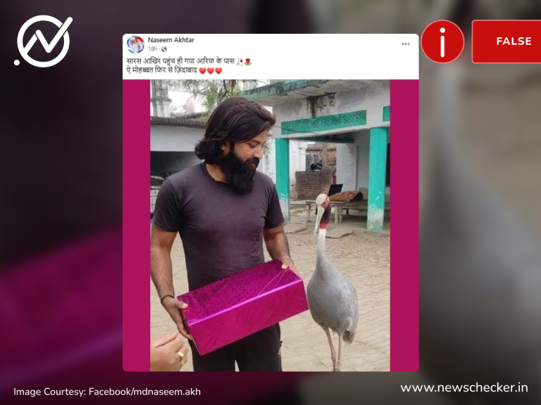 सोशल मीडिया पर एक तस्वीर शेयर कर दावा किया जाने लगा कि वन विभाग जिस सारस को अपने साथ ले गया था वह आरिफ गुर्जर के पास लौट आया है. हमारी पड़ताल में यह दावा फर्जी साबित हुआ। फैक्ट चेक यहां पढ़ा जा सकता है।