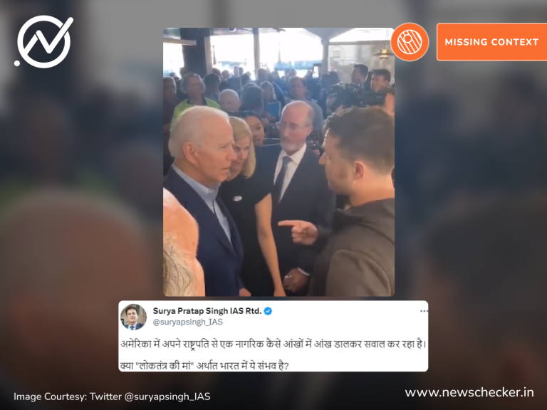 सोशल मीडिया पर एक वीडियो शेयर कर दावा किया गया कि एक अमेरिकी नागरिक अपने राष्ट्रपति से आंखों में आंखे डालकर सवाल कर रहा है। हमारी पड़ताल में यह दावा भ्रामक साबित हुआ। फैक्ट चेक यहां पढ़ा जा सकता है।