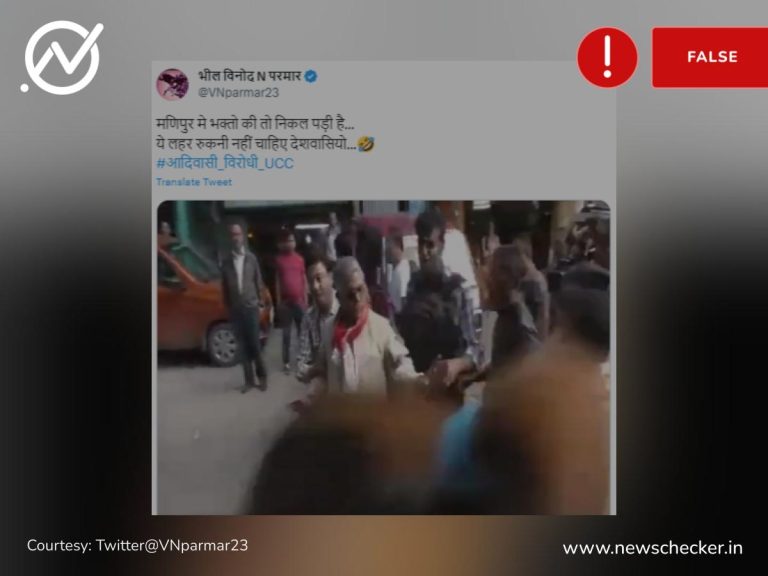 बीजेपी नेताओं के साथ मारपीट करते कुछ लोगों का एक वीडियो सोशल मीडिया पर वायरल हो गया। वीडियो के जरिये कहा जाने लगा कि मणिपुर में स्थानीय लोगों ने बीजेपी नेताओं को पीटकर भगा दिया। हमारी जांच में यह दावा फर्जी साबित हुआ। फैक्ट चेक यहां पढ़ा जा सकता है।