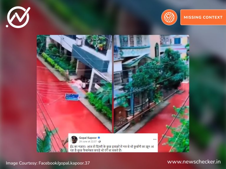 बकरीद के बाद खून से लाल हुई एक सड़क का वीडियो सोशल मीडिया पर वायरल हो गया। यूजर्स दावा करने लगे कि यह वीडियो दिल्ली का है। हमारी पड़ताल में यह दावा भ्रामक साबित हुआ। फैक्ट चेक यहां पढ़ा जा सकता है।