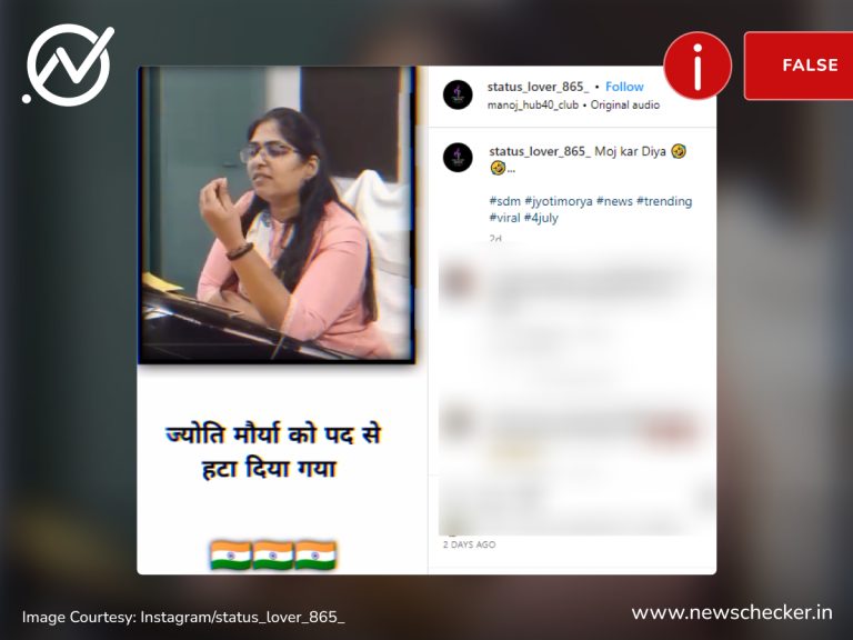 यूपी की पीसीएस अधिकारी ज्योति मौर्या पारिवारिक विवाद के चलते इस समय सुर्खियों में हैं। इसी बीच एक पोस्ट शेयर कर दावा किया गया कि इस विवाद के चलते उन्हें उनके पद से हटा दिया गया है। हमारी पड़ताल में यह दावा भ्रामक साबित हुआ। फैक्ट चेक यहां पढ़ा जा सकता है।
