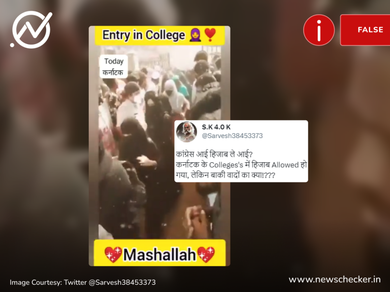 सोशल मीडिया यूजर्स द्वारा एक वीडियो शेयर करते हुए दावा किया जाने लगा कि कांग्रेस ने कर्नाटक की सत्ता में आते ही हिजाब पर लगे बैन को हटा दिया है। हमारी पड़ताल में यह दावा फर्जी निकला। पूरा फैक्ट चेक यहां पढ़ा जा सकता है।