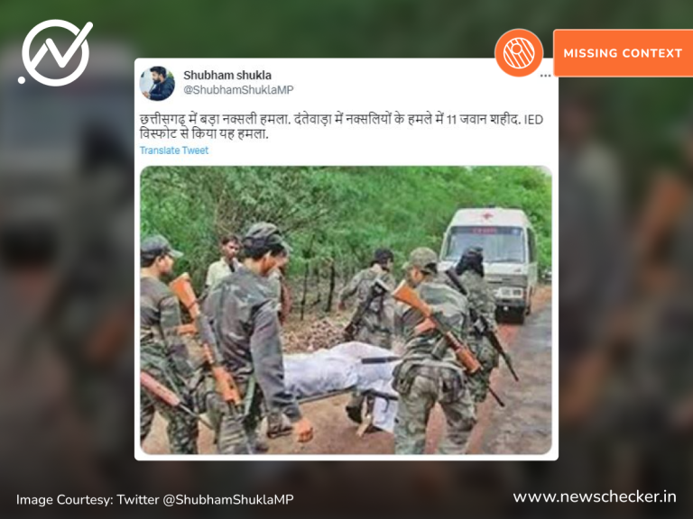 दंतेवाड़ा में जवानों पर हुए नक्सली हमले के बाद एक तस्वीर वायरल हो गई। दावा किया जाने लगा कि यह हालिया तस्वीर है। हमारी पड़ताल में यह दावा फर्जी निकला। फैक्ट चेक यहां पढ़ा जा सकता है।