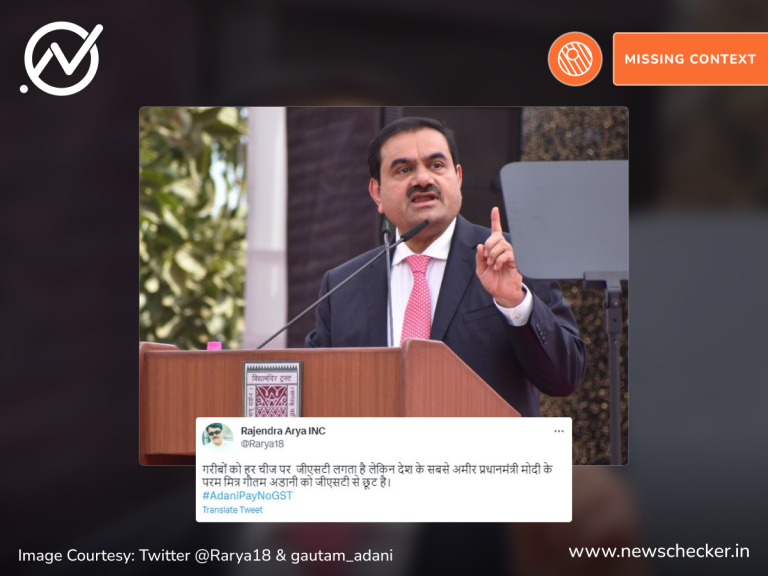 सोशल मीडिया पर एक पोस्ट के जरिए दावा किया गया कि गौतम अडानी को प्रधानमंत्री नरेंद्र मोदी का मित्र होने के कारण जयपुर एयरपोर्ट की डील में जीएसटी नहीं देना पड़ेगा। हमारी पड़ताल में यह दावा भ्रामक साबित हुआ। फैक्ट चेक यहां पढ़ा जा सकता है।