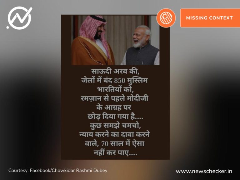 सोशल मीडिया पर एक पोस्ट शेयर कर दावा किया जाने लगा कि रमज़ान से ठीक पहले पीएम मोदी के अनुरोध पर सऊदी अरब ने 850 भारतीय मुस्लिम कैदियों को छोड़ दिया है। हमारी पड़ताल में यह दावा भ्रामक साबित हुआ। पूरा फैक्ट चेक यहां पढ़ा जा सकता है।