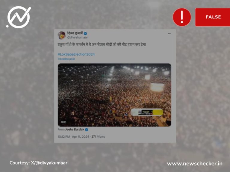 सोशल मीडिया यूजर्स ने एक पोस्ट को शेयर कर दावा किया कि यह राहुल गांधी की जनसभा में उमड़ी भीड़ का वीडियो है। हमारी पड़ताल में यह दावा फर्जी साबित हुआ। फैक्ट चेक यहां पढ़ें।