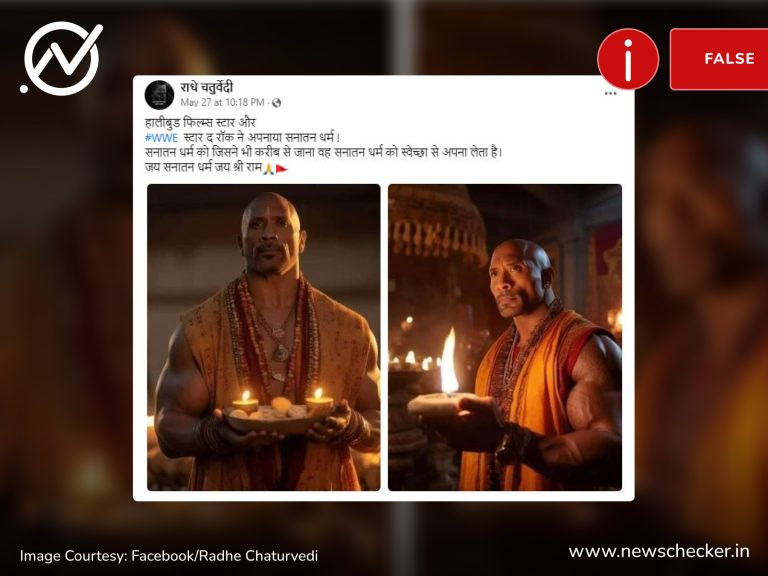 सोशल मीडिया पर एक पोस्ट के जरिये दावा किया गया कि हॉलीवुड अभिनेता ड्वेन जॉनसन ने हिंदू धर्म अपना लिया है। हमारी पड़ताल में यह दावा फर्जी साबित हुआ। पूरा फैक्ट चेक यहां पढ़ा जा सकता है।