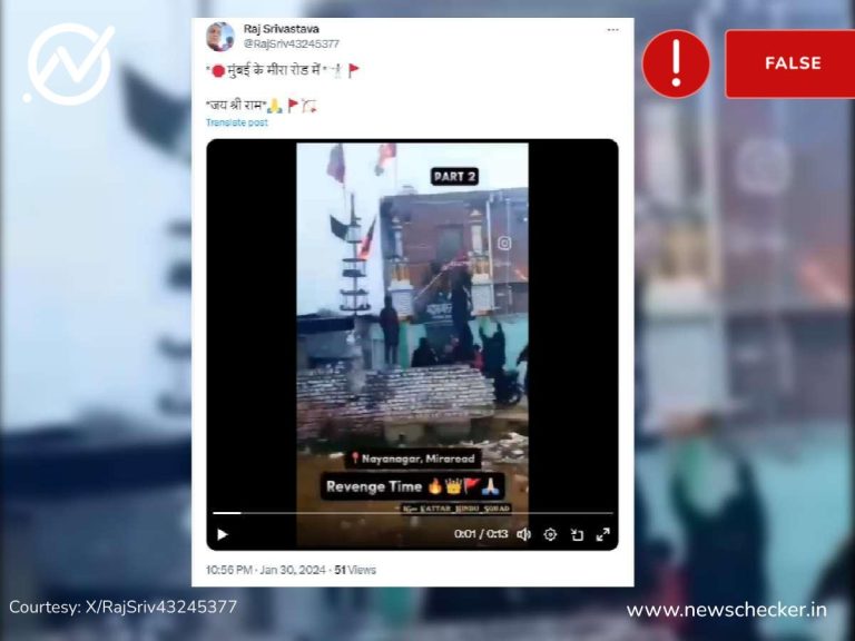 सोशल मीडिया यूजर्स में एक पोस्ट के जरिए दावा किया कि मीरा रोड स्थित एक मस्जिद पर भगवा झंडा लहराया गया। हमारी जांच में यह दावा फर्जी निकला। फैक्ट चेक यहां पढ़ें।