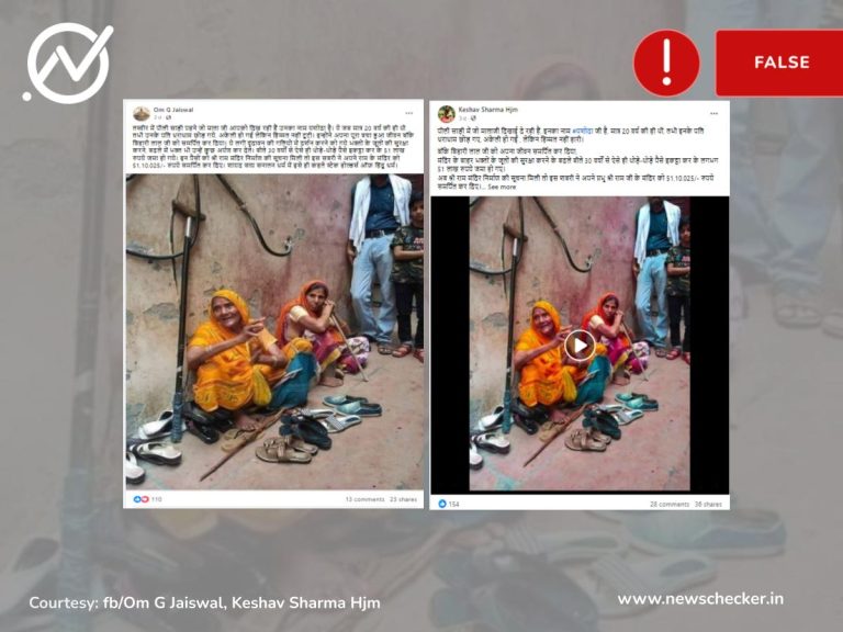 सोशल मीडिया यूजर्स ने एक पोस्ट शेयर कर दावा किया कि वृन्दावन की गलियों में श्रद्धालुओं के जूतों की देखभाल करने वाली यशोदा ने राम मंदिर को 51 लाख रुपये का दान किया है। हमारी जांच में यह दावा फर्जी निकला। फैक्ट चेक यहां पढ़ें।