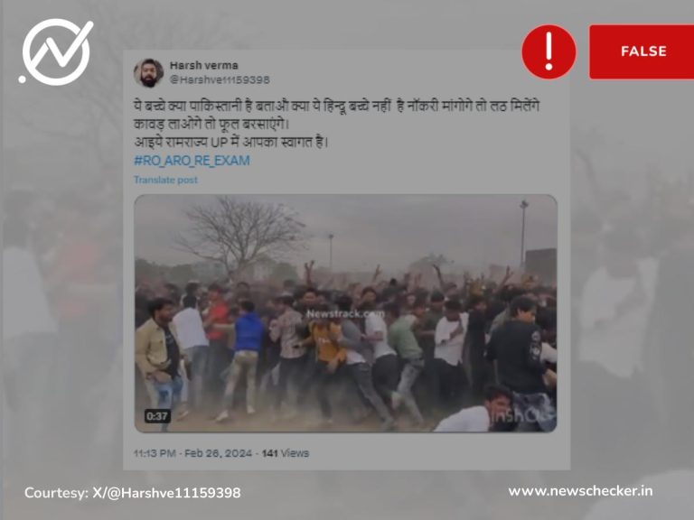 सोशल मीडिया यूजर्स ने एक वीडियो के जरिए दावा किया कि यूपी में आरओ-एआरओ परीक्षा को दुबारा कराए जाने की मांग कर रहे अभ्यर्थियों पर पुलिस ने लाठीचार्ज कर दिया। हमारी जांच में यह दावा फर्जी साबित हुआ। रिपोर्ट यहां पढ़ें।