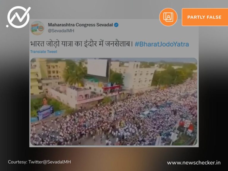 कांग्रेस की भारत जोड़ो यात्रा का एक वीडियो शेयर कर दावा किया जाने लगा कि इंदौर में राहुल गांधी को भारी जनसमर्थन मिला। हमारी पड़ताल में वायरल दावा भ्रामक साबित हुआ। फैक्ट चेक यहां पढ़ा जा सकता है।