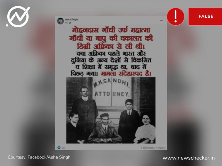 सोशल मीडिया पर महात्मा गांधी की एक तस्वीर वायरल हो गई। दावा किया जाने लगा कि महात्मा गांधी ने दक्षिण अफ्रीका से अपनी वकालत की डिग्री हासिल की थी। हमारी पड़ताल में यह दावा फर्जी साबित हुआ। पूरा फैक्ट चेक यहां पढ़ा जा सकता है।
