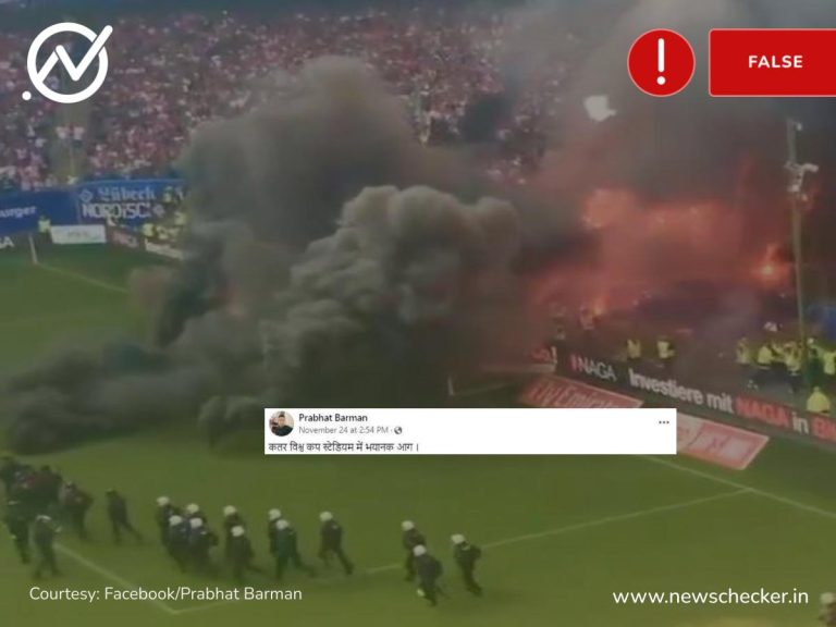 सोशल मीडिया पर एक वीडियो शेयर कर दावा किया जा रहा कि कतर में FIFA World Cup 2022 के एक मैच के दौरान स्टेडियम में आग लग गई। हमारी पड़ताल में वीडियो के साथ शेयर किया गया दावा फर्जी साबित हुआ। पूरा फैक्ट चेक यहां पढ़ा जा सकता है।