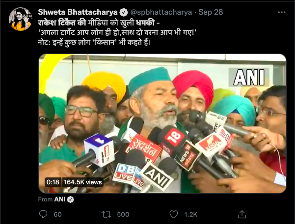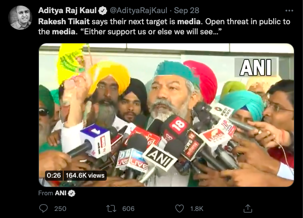 Full Video Of Rakesh Tikait’s Statement: https://twitter.com/ANI/status/1442767126264102914?s=20