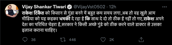 उधर BKU यानि भारतीय किसान यूनियन का आरोप है कि राकेश टिकैत के वीडियो को ग़लत संदर्भ देकर शेयर किया जा रहा है जिसके पीछे एक दल के IT Cell की साजिश है।