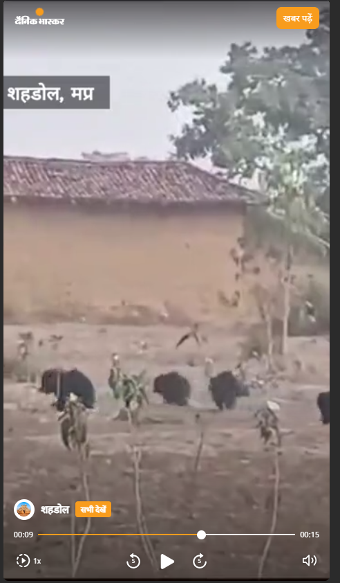 खबर में बताया गया है कि यह शहडोल के जयसिंहनगर वन परिक्षेत्र के बनसुकली गांव की घटना है। वीडियो में दिख रहे पांच भालू मादा हैं और साथ में उनके 4 शावक भी हैं। ये सभी गाँव में घुस आये थे जहाँ से ग्रामीणों ने उन्हें बाहर भगा दिया। भागते वक़्त कुछ लोगों ने इनकी वीडियो बना ली। वही वीडियो अब झूठे दावे के साथ शेयर की जा रही है।