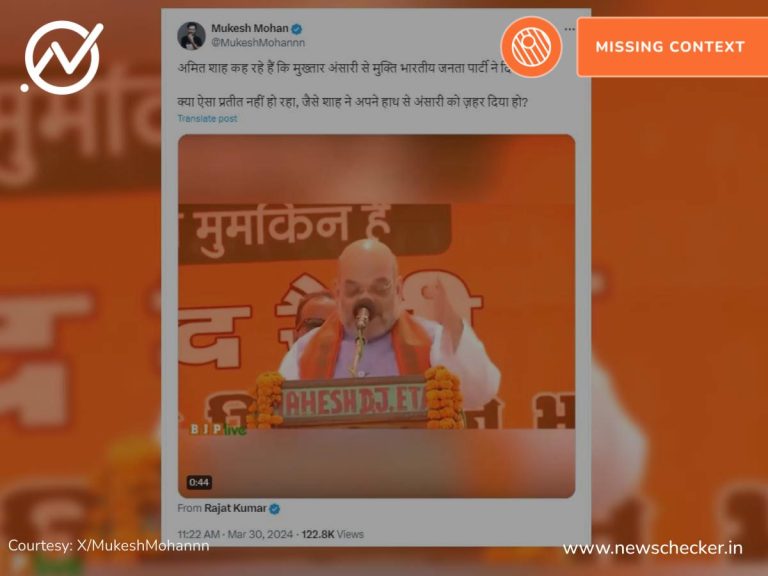 बाहुबली नेता मुख़्तार अंसारी की मौत के बाद अमित शाह का एक वीडियो सोशल मीडिया पर वायरल हो गया। वीडियो को शेयर कर कहा जाने लगा कि अमित शाह ने स्वीकार किया है कि मुख़्तार की मौत की जिम्मेदार सरकार है। हमारी पड़ताल में यह दावा भ्रामक साबित हुआ। रिपोर्ट यहां पढ़ें।
