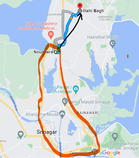 گوگل میپس پیٹھ آو وچھنہ زہِ الٰہی باغ چھُ ڈاون ٹاون پیٹھ 4 کلومیٹر دور۔گوگل میپس منز ہیکیو توہی وچتھِ۔