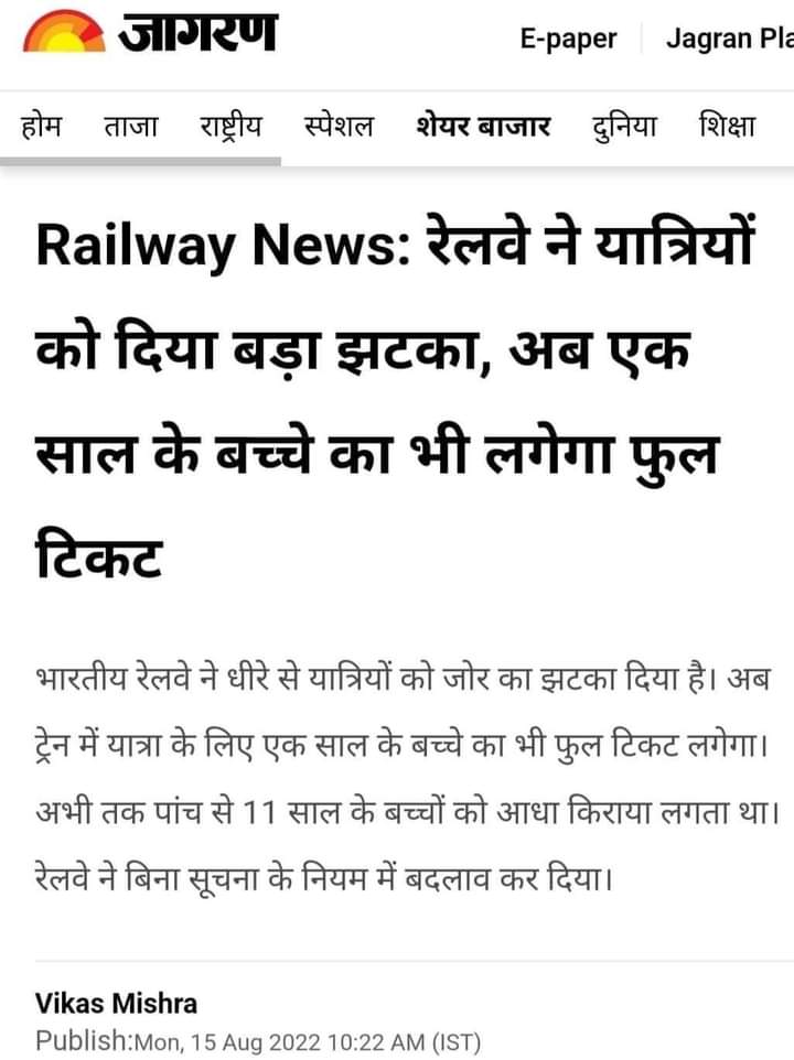ریلوے وزارت طرفہ اکیس پریس نوٹس منز چُھ وننہ آمُت زہِ سرکارن چِھنہ بچن ہندس ٹرین منز سفر کرنس متعلق حکمنامس منز کانہہ ترمیم کرمژ۔