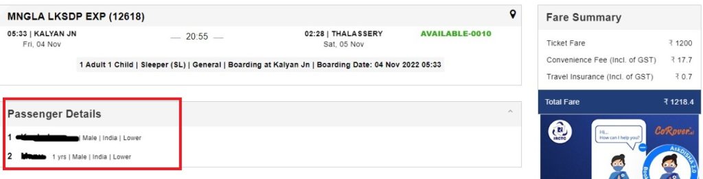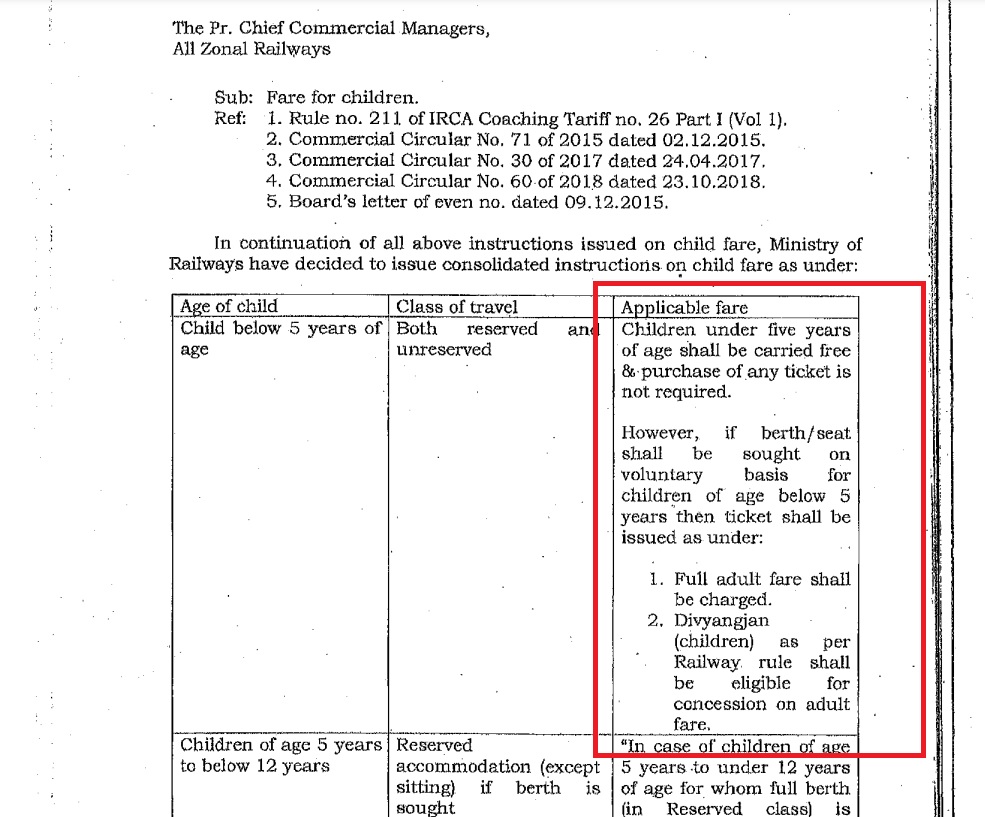 آئی آر سی ٹی سی ویب سائٹِ پیٹھ چھِ 2 آپشن شیر خوار تہ 5 وَہّرِ بچن ہُند ذکر کرتھِ۔ اکسِ منز چُھ شیر خوار بغیر سیٹ لیکتھ یتھ منز واضع یوان چھ اتھِ زہِ شیر خوارن خاطر چھنہ الگ ٹکٹ یوان۔ اَمہِ سآتئ گئی ریلوے بنانچ تصدیق۔