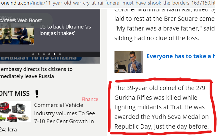 مزید تحقیقاتس دوران آئہ اسہِ ٹائمز آف انڈیاہس پیٹھ اکھ رپورٹ لبنہ یتھ منز یہ امہِ ویڈیوکُ اکھ فوٹو چُھ آؐتُ شیئر کرنہ۔ اتھ رپورٹس منز تہِ چُھ وننہ آمتُ زہِ یہ فوجی کرنل آؤ پلوامہ ہس منز اکسِ انکاونٹرس دوران ہلاک کرنہ تہ امسِ فوجی کرنل سنز کؤو چھِ آخری رسوماتن پیٹھ پننسِ مالسِ سلوٹ دِوان۔