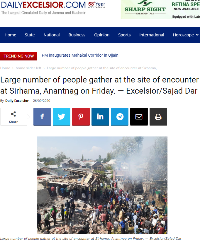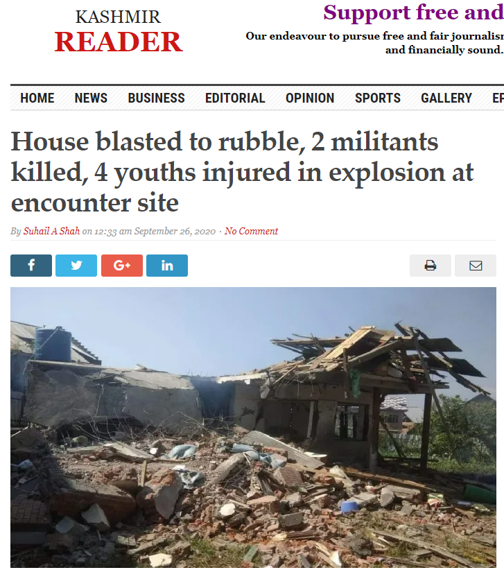 دوئم تصویر گوگل ریورس امیج سرچ کرنہ پتہ آئی اسہِ کشمیر ریڈر وئب سائٹِ پیٹھ ستمبر 26، 2020 ہس منز شائع اکھ رپورٹ امہِ تصویر سان لبنہ۔ رپورٹس منز چُھ وننہ آمتُ زہِ یہ مکان چُھ ضلع اننت ناگ کسِ سرہامہ علاقاس منز انکوانٹرس دوران تباہ گومتُ۔