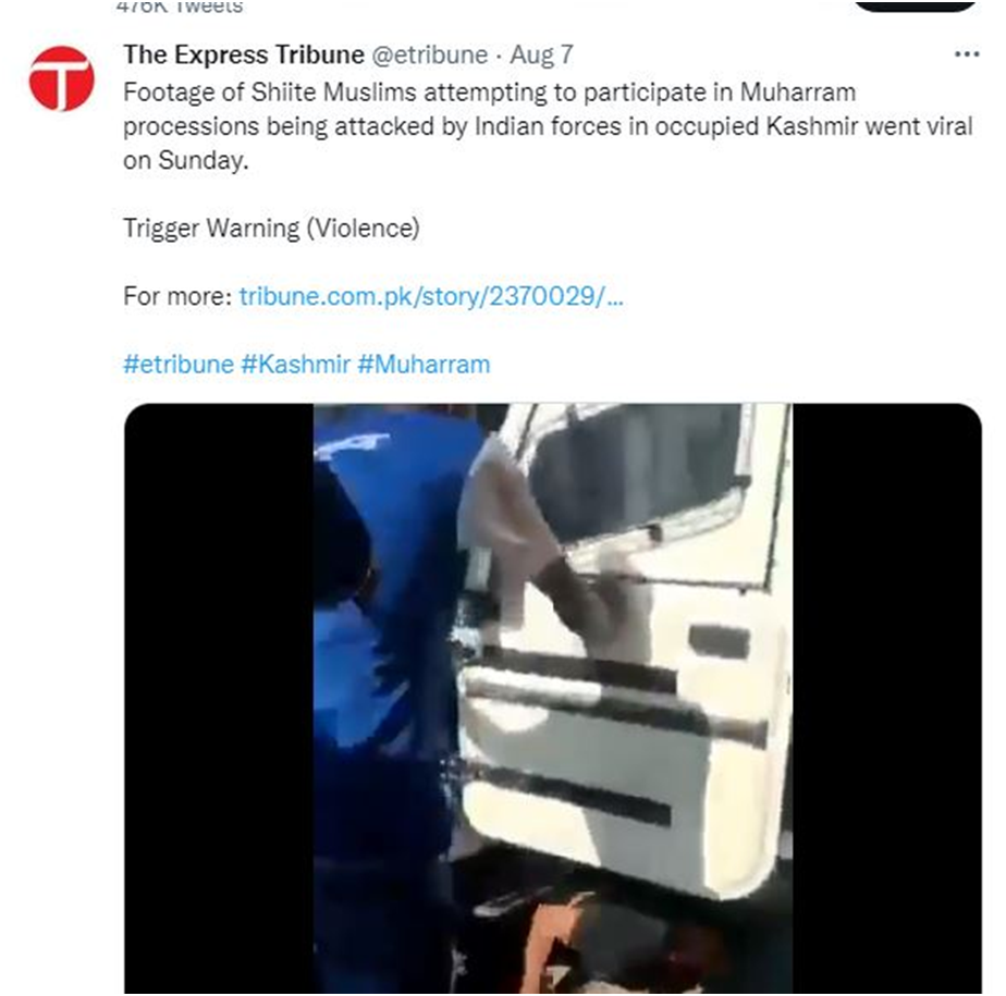 پآکسِتان چھِ اَکِ نیوز ویب سائیٹِ ایکسپریس ٹریبیون تہ چُھ یہوئ سوشل میِڈیاہْس پیٹھ ویڈِیو شیئر کرتھ دعویٰ کران زہِ یہ واقہ چھ حالئ کشیرِ منز محرمس دوران پیس آمتُ۔