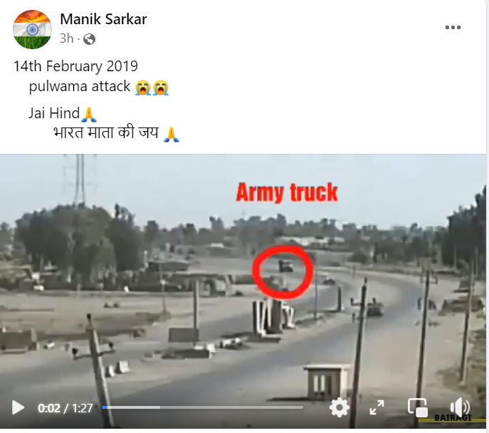 یتھ کن گو نیوز چیکر کسِ تحقیقاتس منز واضع زہِ وائرل ویڈیو یُس 2019 کشیرِ ہندسِ پلوامہ حملکُ یوان چُھ وننہ یہ چُھ اصلی عراقس منز 2007 تس منز فوجس پیٹھ آمتُ کرنہ تہ اتھ چُھنہ پلوامہ حملس سآتِ کانہہ تہِ تعلقُ۔