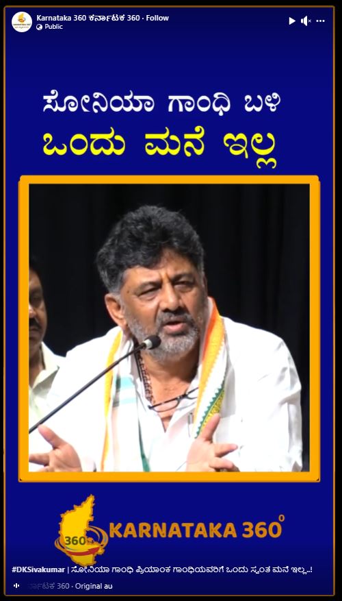 ಸೋನಿಯಾ ಗಾಂಧಿಯವರು ಒಂದೇ ಒಂದು ಮನೆಯನ್ನು ಹೊಂದಿಲ್ಲ ಎಂದು ಉಪಮುಖ್ಯಮಂತ್ರಿ ಡಿ.ಕೆ.ಶಿವಕುಮಾರ್ ಅವರು ಹೇಳುತ್ತಿರುವ ವೀಡಿಯೋ ಒಂದು ವೈರಲ್ ಆಗಿದೆ. ಕಾಂಗ್ರೆಸ್ ಅಧ್ಯಕ್ಷರಾಗಿದ್ದವರು ಹಲವು ಬಾರಿ ಸಂಸದರಾಗಿ ಆಯ್ಕೆಗೊಂಡಿದ್ದರೂ, ಅವರ ಬಳಿ ಸ್ವಂತಕ್ಕೊಂದು ಸೂರಿಲ್ಲ ಎಂಬಂತೆ ಉಪಮುಖ್ಯಮಂತ್ರಿ ಡಿ.ಕೆ. ಶಿವಕುಮಾರ್ ಹೇಳಿಕೆ ನೀಡಿದ್ದಾರೆ. ಇತ್ತೀಚಿನ ಕಾರ್ಯಕ್ರಮವೊಂದರಲ್ಲಿ ಅವರು ಮಾತನಾಡುತ್ತಿರುವ ವೀಡಿಯೋ ಇದಾಗಿದ್ದು, ಸಾಮಾಜಿಕ ಮಾಧ್ಯಮಗಳಲ್ಲಿ ಹರಿದಾಡಿತ್ತು.