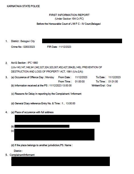 ಈ ಪ್ರಕರಣಕ್ಕೆ ಸಂಬಂಧಿಸಿದಂತ ನಾವು ಪೊಲೀಸ್ ಎಫ್ ಐಆರ್ ವರದಿಯನ್ನು ನೋಡಿದ್ದೇವೆ. ಇದರ ಪ್ರಕಾರ ಡಿಸೆಂಬರ್ 11ರಂದು ಪೊಲೀಸರು ಎಫ್ಐಆರ್ ದಾಖಲಿಸಿದ್ದಾರೆ. 12 ಮಂದಿಯನ್ನು ಆರೋಪಿಗಳನ್ನಾಗಿ ಹೆಸರಿಸಲಾಗಿದೆ. ಈ ಎಫ್ಐಆರ್ ವರದಿ ಇಲ್ಲಿದೆ.