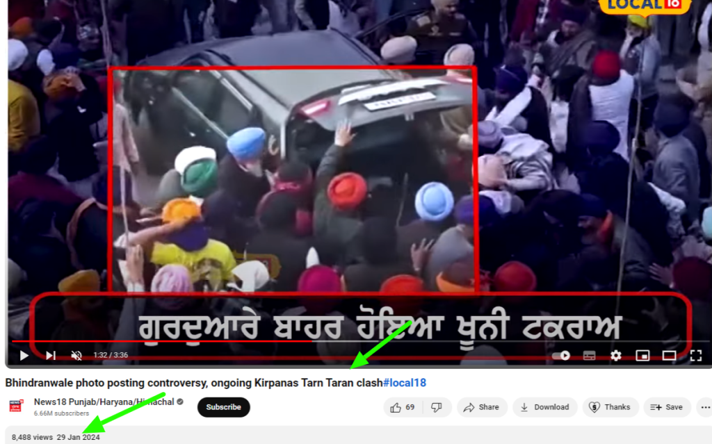 ಇದಲ್ಲದೆ, ಗೂಗಲ್ನಲ್ಲಿ ” “Bhindranwale poster” ಮತ್ತು ” Tarn Taran clash” ಬಗ್ಗೆ ಕೀವರ್ಡ್ ಹುಡುಕಾಟದಲ್ಲಿ ನ್ಯೂಸ್ 18 ಪಂಜಾಬ್ / ಹರಿಯಾಣ / ಹಿಮಾಚಲದ ಜನವರಿ 29, 2024 ರ ಘಟನೆಯ ವೀಡಿಯೋ ವರದಿ ಲಭ್ಯವಾಗಿದೆ.