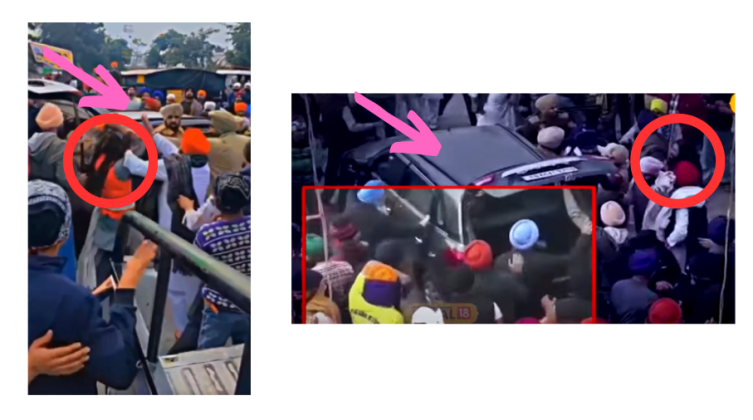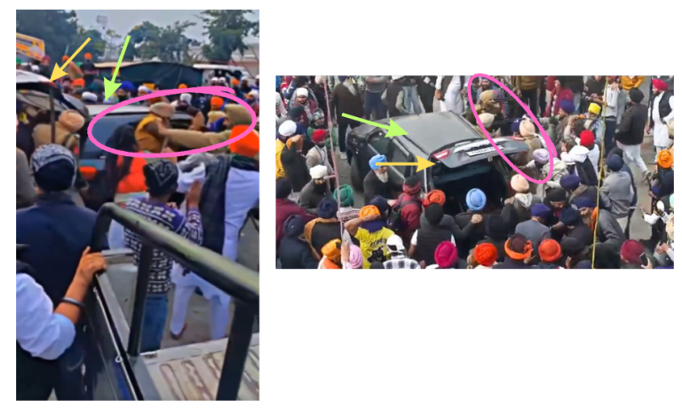 ಪೇಟ ಧರಿಸಿದ ಪುರುಷರ ಗುಂಪು ಪೊಲೀಸ್ ಅಧಿಕಾರಿಗಳೊಂದಿಗೆ ಘರ್ಷಣೆ ನಡೆಸುತ್ತಿರುವುದನ್ನು ಮತ್ತು ಕಾರನ್ನು ಧ್ವಂಸಗೊಳಿಸುವ ವೀಡಿಯೋವೊಂದನ್ನು ಸಾಮಾಜಿಕ ಮಾಧ್ಯಮದಲ್ಲಿ ವ್ಯಾಪಕವಾಗಿ ಹಂಚಿಕೊಳ್ಳಲಾಗುತ್ತಿದೆ. ಹದಿನೈದು ಸೆಕೆಂಡುಗಳ ಈ ವೀಡಿಯೋದಲ್ಲಿ ಖಡ್ಗ ಹಿಡಿದ ವ್ಯಕ್ತಿಯೊಬ್ಬ ಪೊಲೀಸರ ಮೇಲೆ ದಾಳಿ ನಡೆಸುತ್ತಿರುವುದನ್ನು ಕಾಣಬಹುದು. ವೀಡಿಯೋ ಹಂಚಿಕೊಂಡ ಅನೇಕ ಬಳಕೆದಾರರು ಇದನ್ನು ಈಗ ನಡೆಯುತ್ತಿರುವ ರೈತರ ಪ್ರತಿಭಟನೆಗೆ ಲಿಂಕ್ ಮಾಡಿದ್ದಾರೆ ಮತ್ತು “ಧಾರ್ಮಿಕ ಉದ್ದೇಶಕ್ಕಾಗಿ ಮಾತ್ರ ಖಡ್ಗ ಹಿಡಿಯಲು ಅನುಮತಿ ಇದ್ದರೂ ಅದನ್ನು ಬಳಕೆ ಮಾಡಿದ ರೈತ ಎಂದು ಹೇಳಿಕೊಳ್ಳಲಾದ ವ್ಯಕ್ತಿಯನ್ನು ಅವರು ಪ್ರಶ್ನಿಸಿದ್ದಾರೆ.