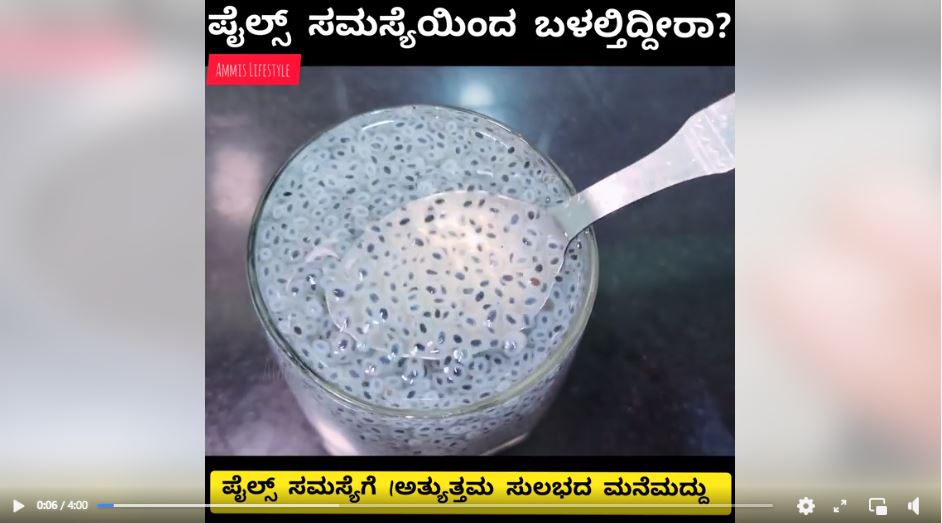 ಕಲ್ಲು ಸಕ್ಕರೆಯೊಂದಿಗೆ ಕಾಮಕಸ್ತೂರಿ ಬೀಜಗಳು ಸೇರಿಸಿ ಕುಡಿಯುವುದರಿಂದ ಪೈಲ್ಸ್ (ಮೂಲವ್ಯಾಧಿ) ಗುಣವಾಗುತ್ತದೆ ಎಂದು ಸಾಮಾಜಿಕ ಜಾಲತಾಣದಲ್ಲಿ ವೀಡಿಯೋವೊಂದು ಹರಿದಾಡಿದೆ.